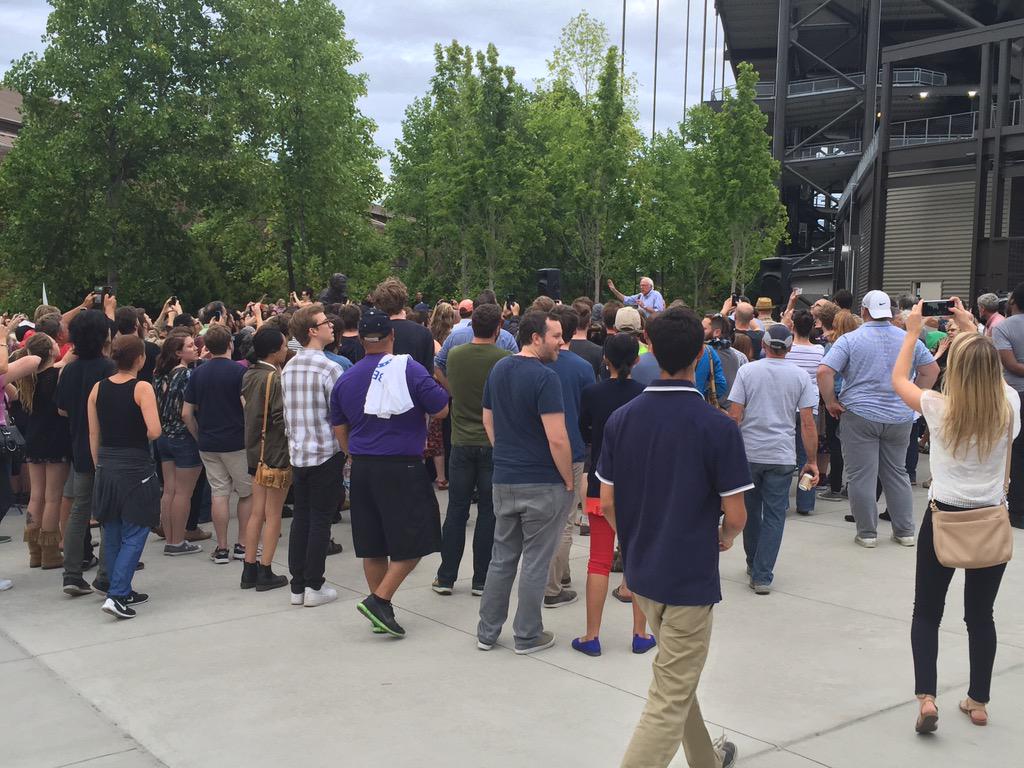 Bernie Sanders talking with overflow crowd before his formal speech. 12,000 people in Hec Ed, no more can go in.