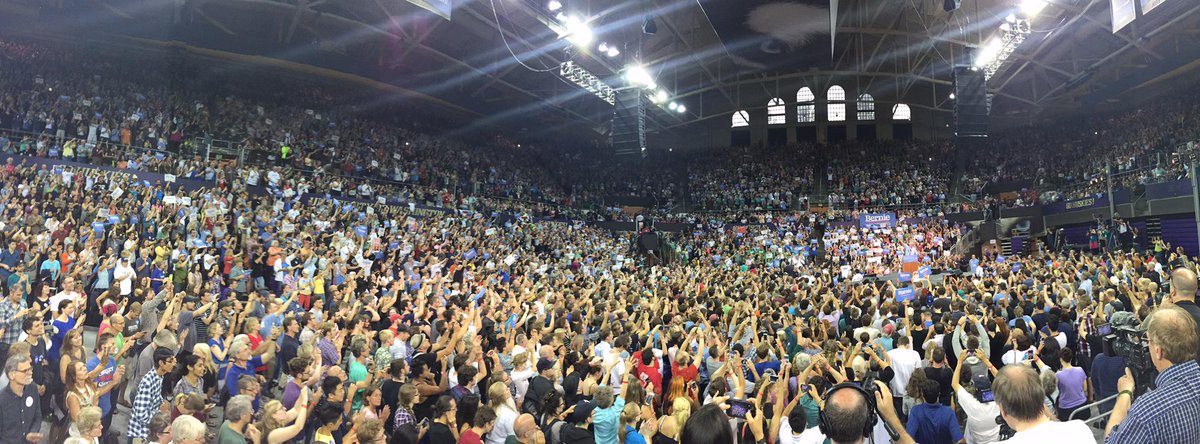 It was the biggest rally yet for Bernie & will be until tomorrow night in Portland where 20,000 resvp-ed. When people rsvp for Bernie, they tend to mean it.
