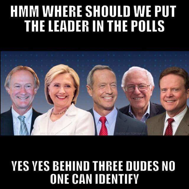 ETA: And, of course, besides the rest of what folks have pointed out, notice that Hillary is the only one whose shoulders are both fully in view, making sure you know she's out in front, while the other guys get one shoulder apiece, and Bernie gets none.