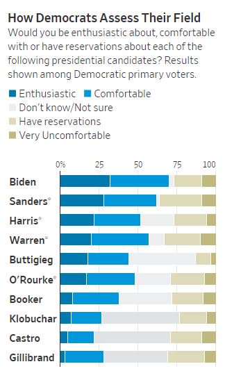 (60,849 posts)And at this stage in the primary campaign, with so many candidates, I think having 70% either enthusiastic about Biden or comfortable with him is pretty good.