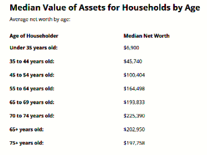 (1,810 posts)The average net worth for those age 65-69 is $194,226. When you are ready to retire, you should have ten times your final salary saved.