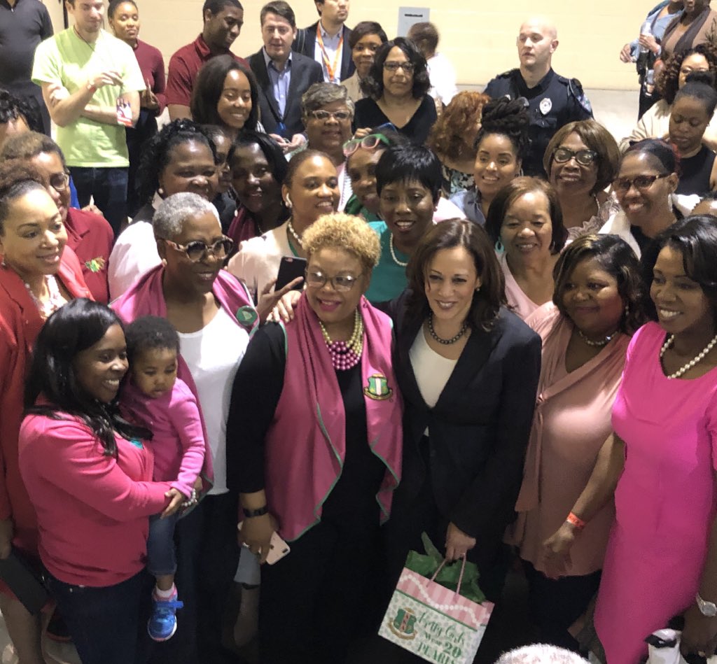 Thats a wrap from @KamalaHarris, who closes out her 2-day South Carolina campaign trip amid a sea of the pink and green of her sorority sisters from @akasorority1908