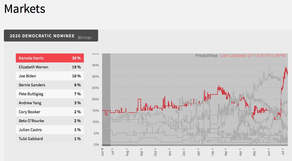 More movement with Predictwise: Harris still on top. (Original Post) fleabiscuit Jul 2019 OP