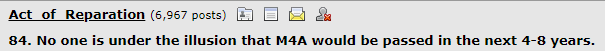 Also, many think it can be passed if Sanders or Warren are POTUS, especially the Bernie supporters. The majority are NOT saying, elect Bernie or another pro MFA POTUS and it will fail.