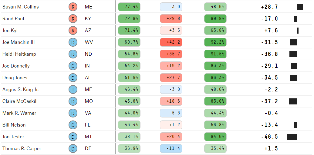 Manchin is bad news overall (his only truly main redeeming quality is he caucuses with us, but even that can change), as his aiding Collins can cost us, and he also votes with Rump (61% of the time in the last full Congress) more than any other Democratic Senator, AND he votes for Rumps SCOTUS nominees, PLUS he is threat to flip caucuses, given a bad scenario