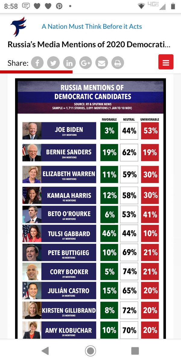 Then, it was almost immediately clarified that it's the Repubs and not the Russians who might be grooming Gabbard for the third party run. As for internet support, it's a fact that Russian bots support her and that she's among one of very few who get positive coverage from them which stands in contrast to pretty much every other Dem.