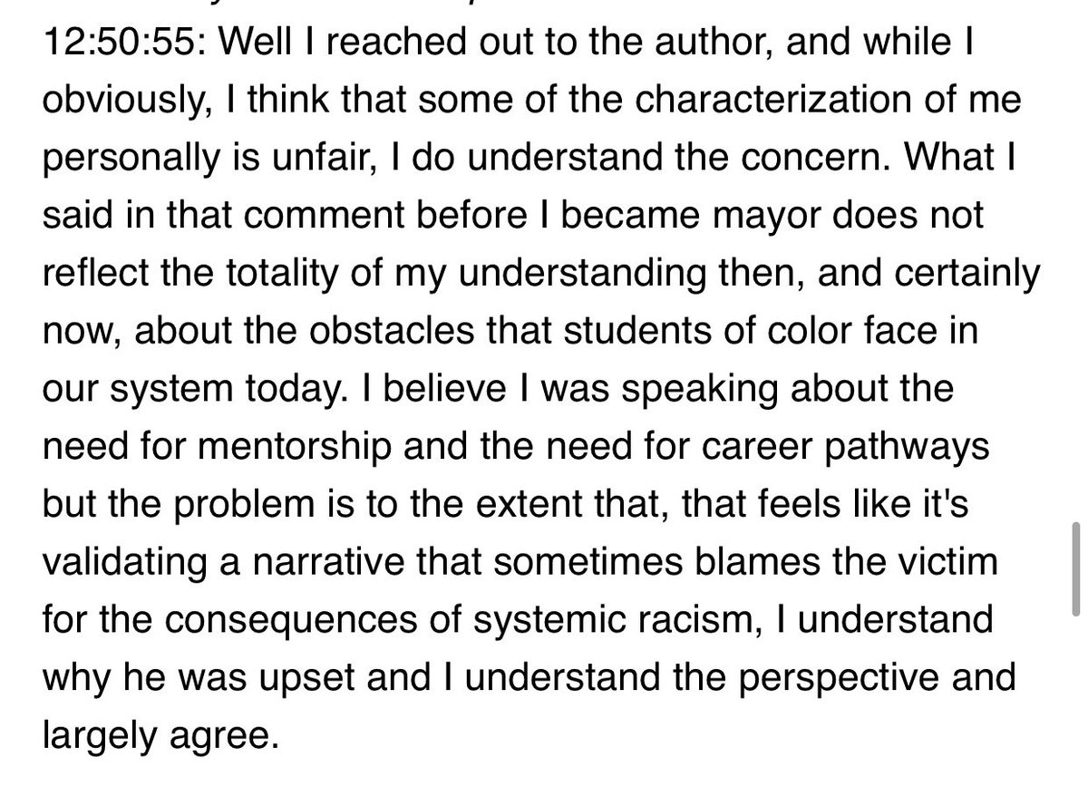 "In addition, his remarks assume that low income students primarily lack a good role model and they would then more easily be able to overcome the socio and economic barriers facing them and their parents, the institutional racism and bias encountered by these students many times overlooked for opportunities or entirely ignored."