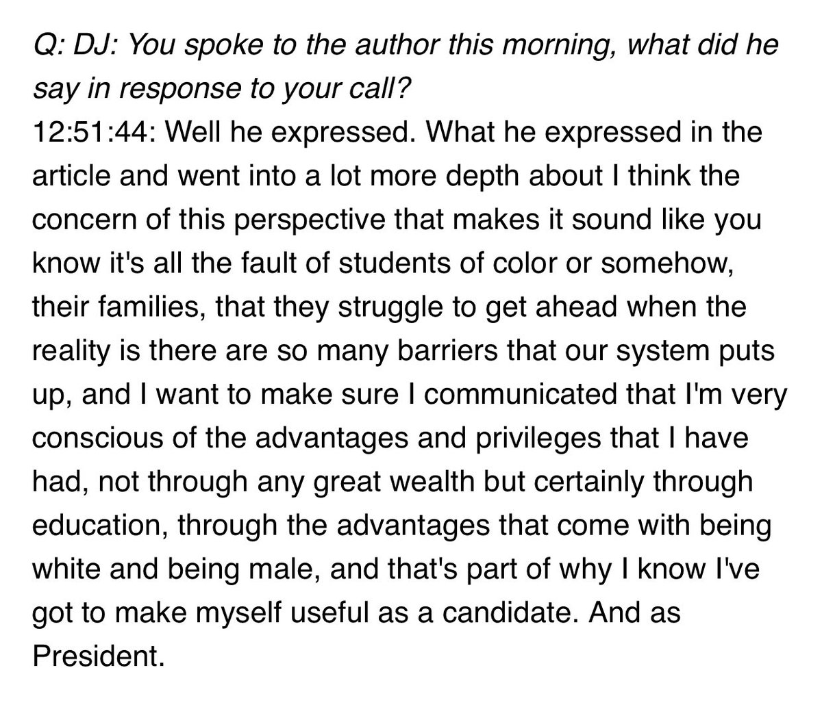 Pete talks as if black parents do not value education. Why didn't he talk about systemic racism and how it effects the ability to go to school, stay in school and get a job commensurate with a degree?