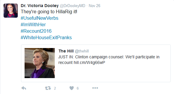 (20,964 posts)about the health of the Democratic nominee during the GE campaign, as well as "lock her up" memes and "HillaRig" ("useful new verb!" ) hashtags after the election.