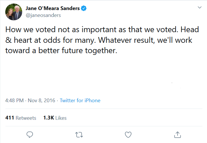 Hello 4 more years of president Trump, destroying the institutions of America, killing the impartiality of the courts and complete erosion of rights for the marginalized... all because you had to vote your conscience. My conscience is more important than your rights!