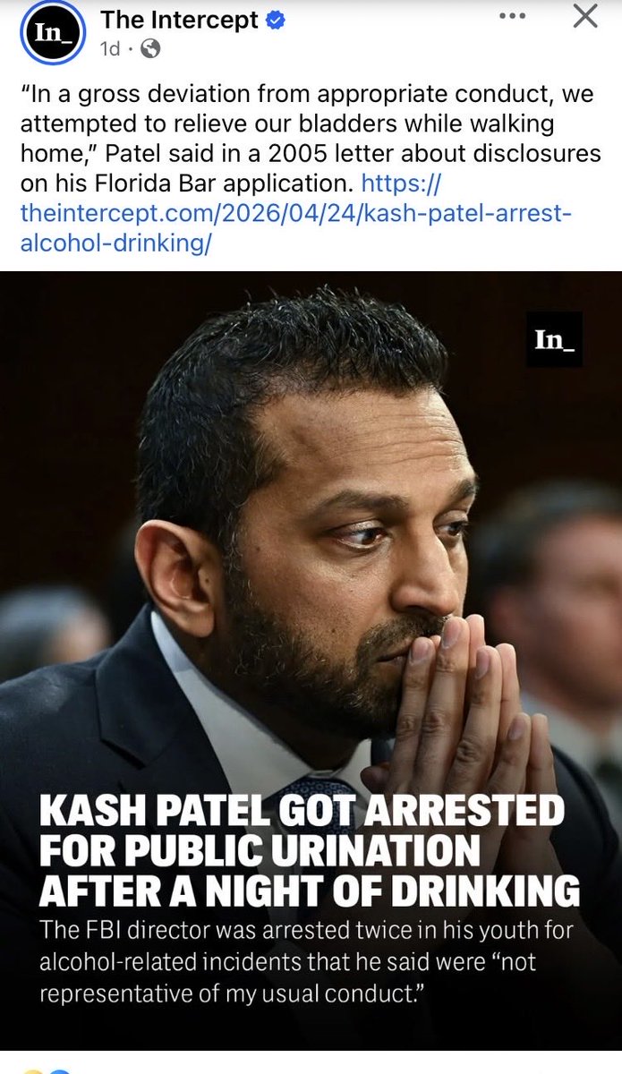 https://theintercept.com/2026/04/24/kash-patel-arrest-alcohol-drinking/