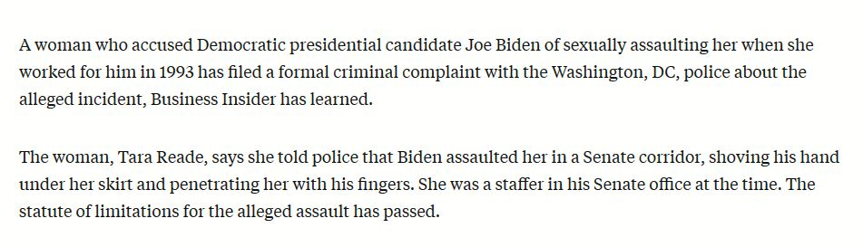 Thank you for this, Goth! Unsurprisingly, the NYT found no evidence that Biden sexually assaulted..