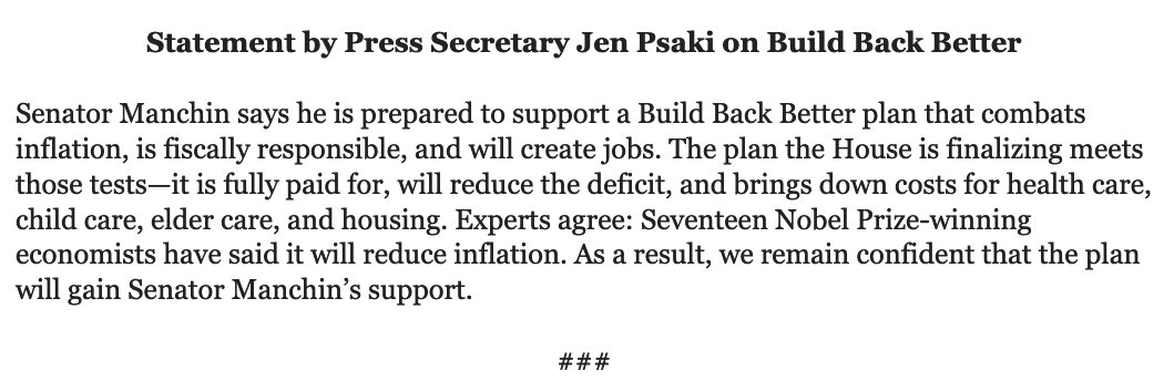 So it sounds like posturing for his constituents on Manchin's part and a wink and a nod on Psaki's. lapucelle Nov 2021 #3