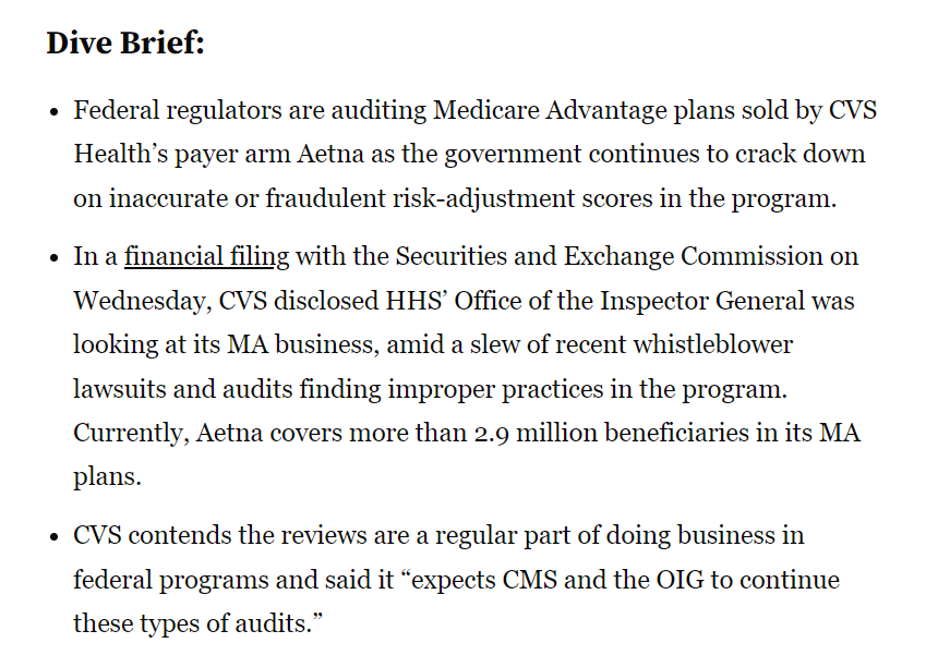https://www.healthcaredive.com/news/oig-audit-targets-aetnas-medicare-advantage-plans-as-government-cracks-dow/604515/