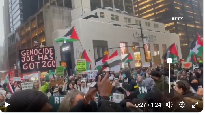 Anti-Israel protesters block the main entrance at the WTC in NYC: "Genocide Joe Has Got to Go" [View all]