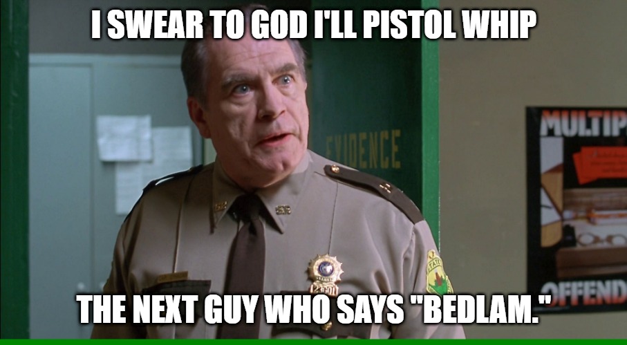 If by "bedlam" he means dancing in the streets, singing, celebrations and fireworks (though I hate fireworks)