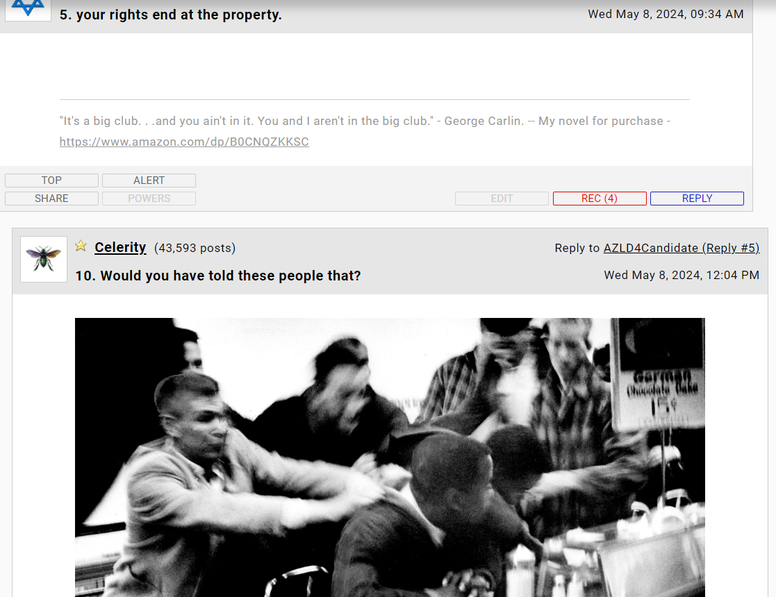 I was specifically addressing the 'it is private property so their rights are forfeit' argument.