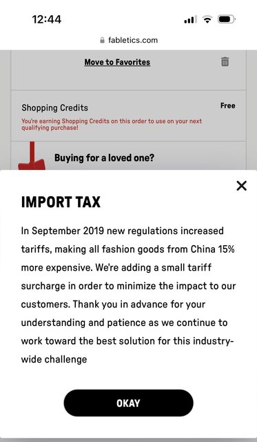 • Require retailers and restaurants to itemize how much these tariffs add to your shopping bill. For example, Fabletics had this "Import Tax" section with an explanation for why customers were being charged more.