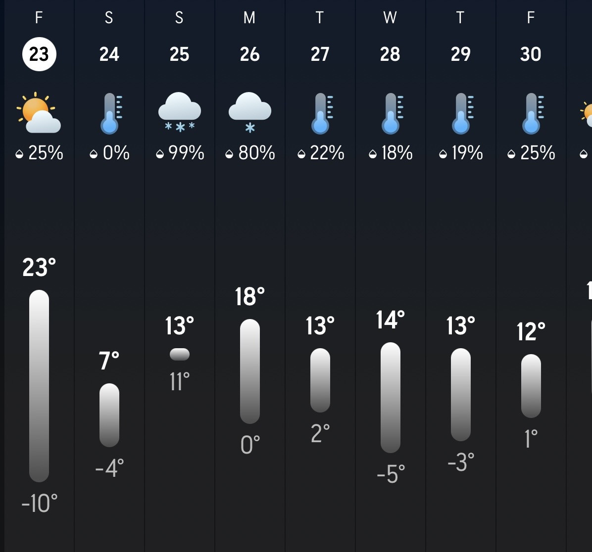 6 to 8 inches predicted, and bitter cold temps. Emile Thursday #20