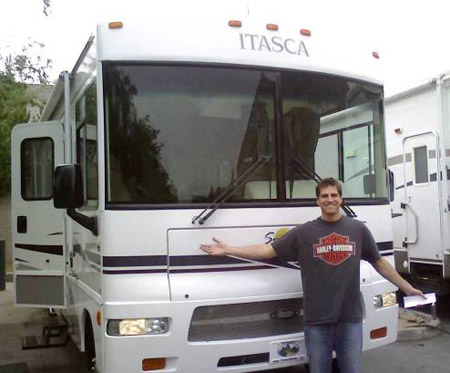 Josh Romney, commander of luxury Winnebago self serving Campaign Brigade, in the Romney menfolk tradition: