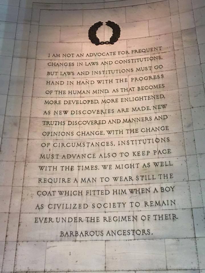 Mine was it can be done- and new amendments can be written. Are you saying that the amendments and the Constitution is immutable? I believe it can be rewritten, reworded and changed. Written on the walls of the Thomas Jefferson Memorial are these words: