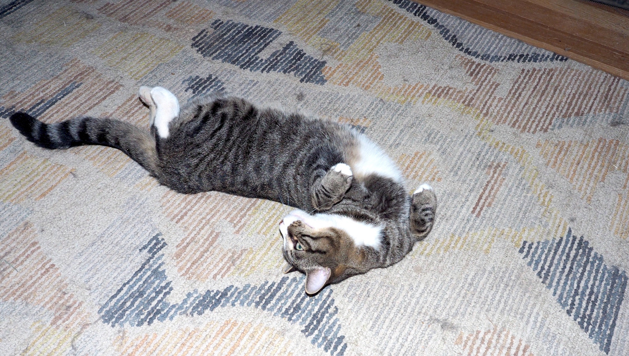 YES Laffy Kat! Until bedtime he walked all around the house meowing and cuddled up with Mommy,