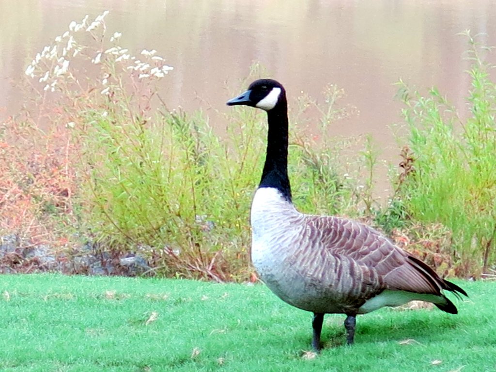 This one goose didn't move while his buddies were grazing this morning in back of my house by the pond.
