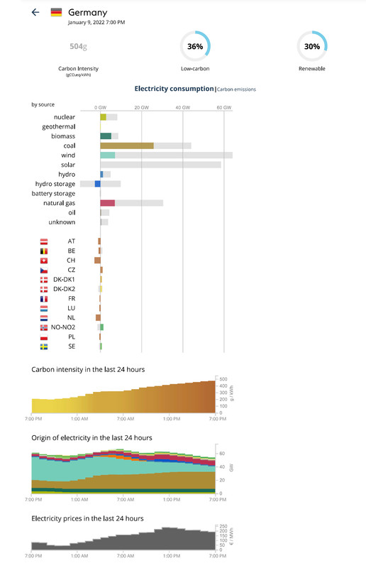 Accessed at 22:16 EST (US), 10:16P January 9, 2022: https://app.electricitymap.org/zone/DE