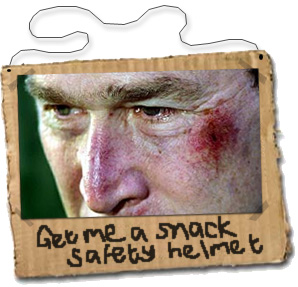 president Bush a safety helmet, and not just for pretzels