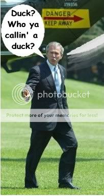 Bush is too busy sticking 2 fingers up at the collected press and global community that he walks into the still rotating tail blades. The world rejoices and proclaims 13th of May "Freedom(TM) Day"