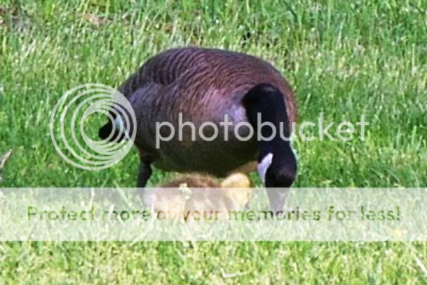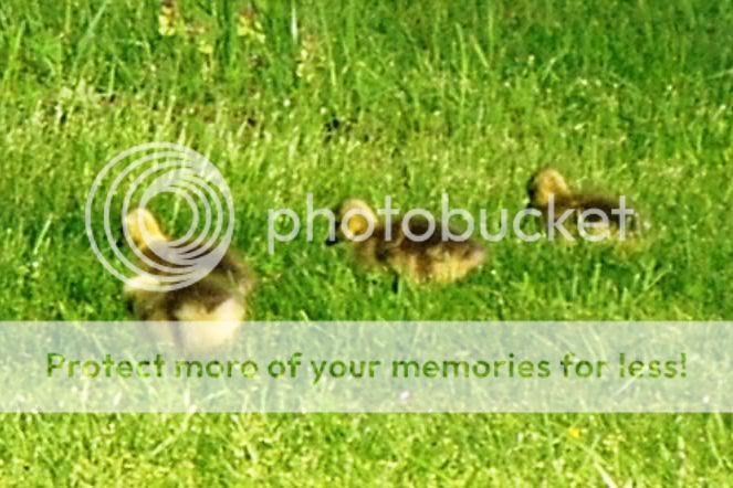 Baby geese are extremely cute. Here's a picture of one of them going off the ledge. They can't fly, so they just... jump.