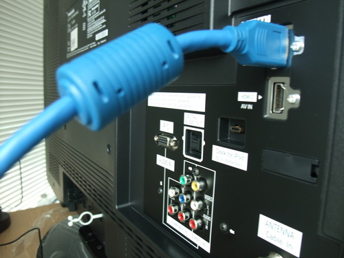 There is also a component video cable connection that is made up of 3 wires for the video and two for the audio. in the picture below the first two are audio and the rest are video on the nice new TV if HDMI is not available this is the way to go for a better picture.