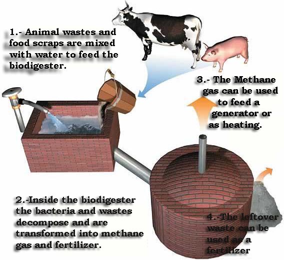 Biogas is a mixture of methane and carbon dioxide, with small proportions of hydrogen, nitrogen, oxygen and sulfide of hydrogen. The gas is obtained from decomposition in an anaerobic (oxygen free) environment of organic waste, such as animal manure or vegetable waste. It is being used for lighting and cooking, reported the local media.