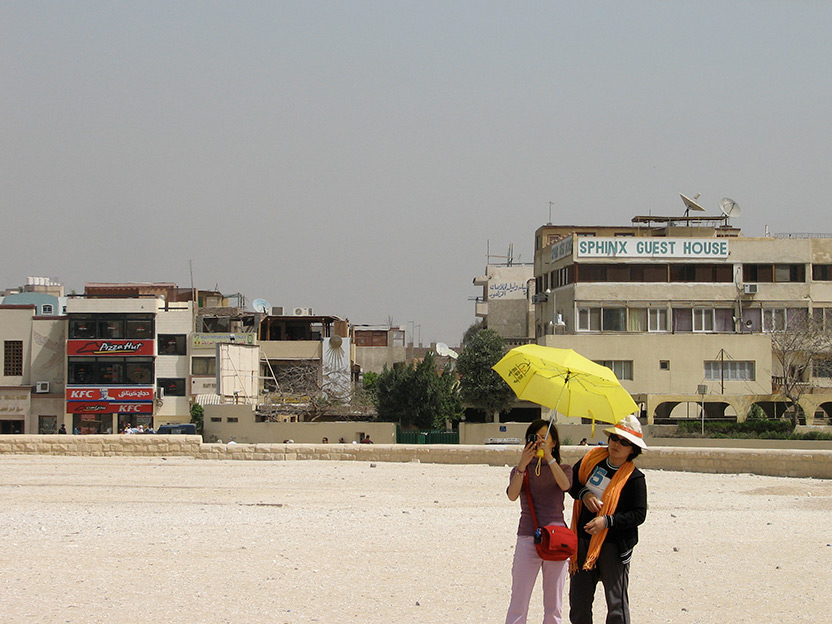 Didn't get a chance to ask him my verifying question - what grand structure is located right across the street from the Giza Pyramids?