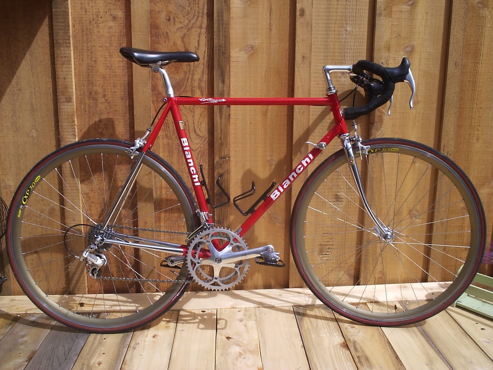 http://www.sheldonbrown.com/schwinn-braze.htmlPlease note, while the 1973 Paramount had its levers in the same place as your Bianchi, the Bianchi appears a lot newer (for example it looks like it has a Clear Coat Paint Job, Clear Coats only came into common usage in the 1970s), The gearing looks to be more then five gears in the rear, thus implies it is post-1980 construction. Nine speeds have been the "Norm" for the last fifteen years, prior to that Eight Speeds. Various attempts have been made to go to Ten Speeds, but most have failed i.e. customers did not buy them OR they just did not work. Court the number of gears and we can then guess when the gears were first made. Now, the frame could be older, with new gears installed later, but it is a start on determining the age of this frame.