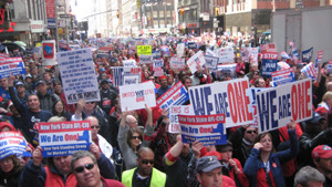 Workers from the public sector, private sector and building trades lined Seventh Avenue, starting at 42nd Street and stretching several blocks south, in a show of solidarity to deliver one simple message: "We Are One - Respect Our Rights."