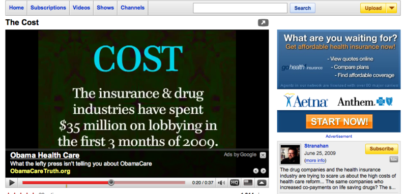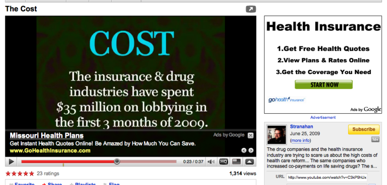| 19. Check this screen capture- when viewed on YouTube the insurance company ads are telling! |