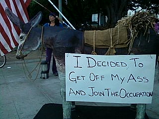 My wife and I spent a good portion of both Saturday and Sunday at City Hall in downtown Los Angeles to support the Occupy Los Angeles encampment. We each carried one of my wife's meticulously crafted signs. And we saw many great signs that others carried.