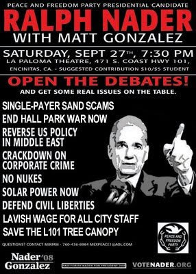 | 26. Not off topic at all. Ralph Nader IS the topic. |