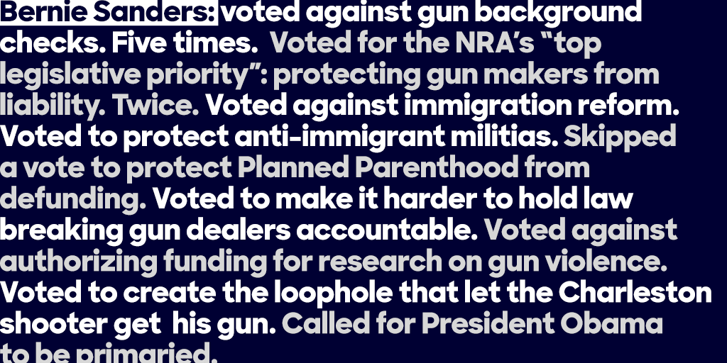 Sanders voted against the 1993 Brady Bill, which required background checks for gun purchases. In 2005, he voted to protect gun manufacturers from lawsuits brought by victims of gun violence. He changed his mind.