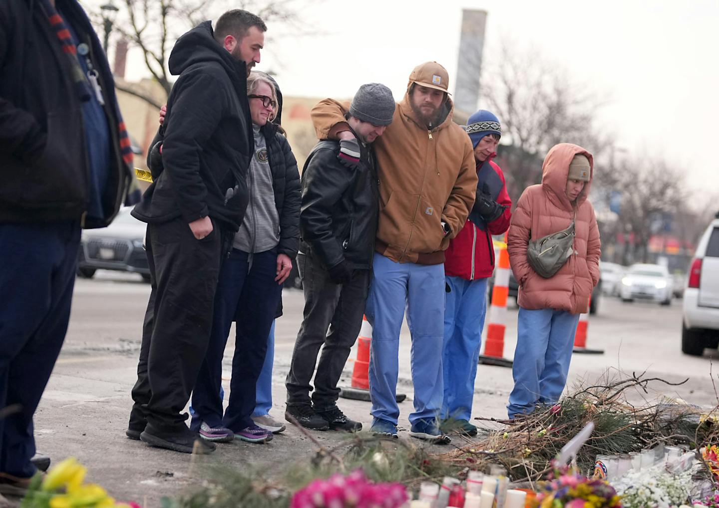 Nurses who knew Alex Pretti, the man shot and killed by a federal agent in Minneapolis, pay their respects at the scene of the shooting on Sunday, Jan. 25. (Richard Tsong-Taatarii/The Minnesota Star Tribune)